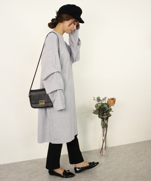 【ポイント】 大人カジュアルにピッタリ! 袖コンシャスで他と差が付くビッグシルエットスウェットカットソー! バックスリットの入ったデザインと袖コンシャスでいつものスウェットカットソーとは一味違ったデザインに。 トレンドの超ビッグシルエットがとっても可愛いデザインに。袖部分は3段フリルのようになっておりシンプルなのにこなれ感のある印象に! ☆スタッフおすすめポイント☆ 差し色のワイドパンツと合わせて全体をゆるっとまとめるのがオススメ♪ 【生地感】 伸縮性抜群のスウェット生地を使用。肌触り柔らかな素材でストレスフリーな着心地。 【サイズ感】 普段Sサイズ着用の方⇒○ 普段Mサイズ着用の方⇒○ 普段Lサイズ着用の方⇒○ ※体型やお好みにより個人差がございます。 あくまで着用時の雰囲気の目安としてお考え下さい。 ※モデル着用写真は撮影環境により、多少実際のカラーと異なる場合がございます。予めご了承をお願いいたします。