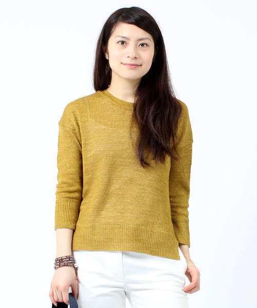 品のある抜け感を演出するシンプルニットが入荷。ほど良い光沢と柔らかい風合いのリネン100%糸を使用。清涼感のある軽やかな仕上がりは、夏まで十分にお召頂けます。袖口と裾のリブは長めに。脇スリットを施し、シンプルなプルオーバーにアクセントを効かせました。トレンドの柄パンツでスタイリッシュに。品のあるスカートできちんスタイルも◎。バランスの取り易いデザインは、着回せる一着として是非お勧めです。 Model :H166 B78 W58 H88 (cm) Size : ONE SIZE 店舗へお問い合わせの際は下記品番をお伝えください。 品番:68-15-0087-551
