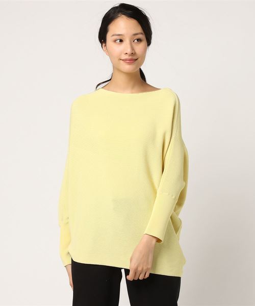 昨年ご好評いただきましたバイヤスガーターニットの2018春Ver.です♪アシンメトリーなドルマンデザインで、どの角度から見てもおしゃれ◎全体のゆったりしたイメージを袖口のリブできゅっと引き締めてバランスを取っています。伸縮性に富んだニットは着心地抜群。ほんのりシャリ感があり清涼感のある肌ざわりなので、ロングシーズン着回していただけます。1枚でシンプルにゆるっと着るのはもちろん、シャツとの重ね着できちんとコーデもおすすめです☆