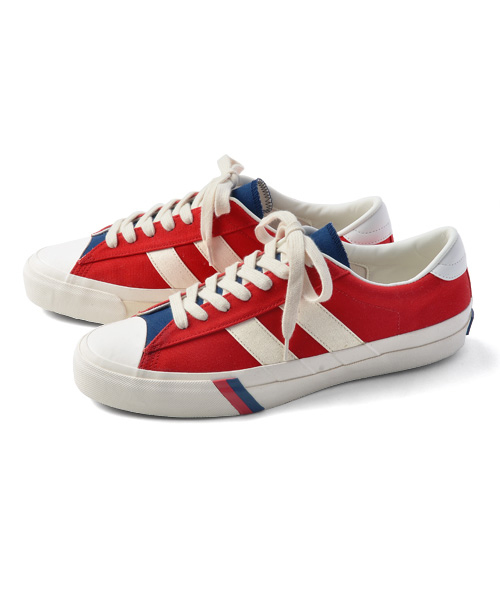 『WEB限定カラー スペシャルアイテム』 *トリコロールはWEB限定カラー* スニーカーブランドの雄、PRO-Kedsとのコラボレートアイテム。 ブランドを代表するモデル、ROYAL PLUSをスペシャル仕様で展開。 通常、アッパーにスウェード素材を使用しているモデルに帆布を採用。 また特徴である2本ラインにも通常のヘリンボーンテープと違い、帆布を採用。 シーズンテーマとなる「SURF CAMP」を体現するサーフスタイルに仕上がりました。 ブラック、オフホワイト、トリコロールのカラー展開。 トリコロールはWEB店舗のみで展開されるスペシャルカラーです。 品番:135221 【PRO-Keds】 1958年アメリカは東海岸コネチカット州に生まれ、アメリカ最古のスニーカー Unaited State Rubber Company(1840年代~)社が作った競技者向けのAthletic Shoesとして Kedsブランドより独立したシューズになります。 Kedsブランドは1916年にUnaited State Rubber Company社から生まれたスニーカーブランドです。 1930年代にKedsブランドより1つのBike Kedsという自転車にも乗って履けるスニーカーが生まれ、 この靴が後にバスケットシューズへとなっていきました。 この様にバスケットシューズの原型と言われる靴をKeds社が輩出しました。 もう1つレディースでいうパンプス(カッターシューズ)の原型もKedsブランドから 生まれたデザインになります 。 この様に1800年代より1950年代までに数多くのスニーカーデザインやシューズデザインを 生み出してきました。 *ROYAL PLUS(1980年代モデル)* このデザインは1970年代にバスケットシューズとして生まれました。 この頃のアメリカではまだまだ革製品のバスケットシューズが少なく、 ケッズのバスケットシューズを履いてNBAの選手達がプレーをしている頃、 PRO Kedsは世界のマスプロダクションへの流通の風を先取り、 南米はコロンビアにて生産を始めました。 それが俗に言う”ラストコロンビア”と造語が生まれる靴になりました。 デザインの特徴として、コンバースに比べてラバーの質感、ソールのグリップ性と それを作る為にソールに厚みを持たせたデザインになります。 1970年代に初期モデルが作られ1度木型の変更が1980年代にあり、2つの木型のデザインがあります。 今シーズンの展開モデルは1980年代モデルになります。 ※画像の商品はサンプルです。 実際の商品と仕様、加工、サイズが若干異なる場合がございます。