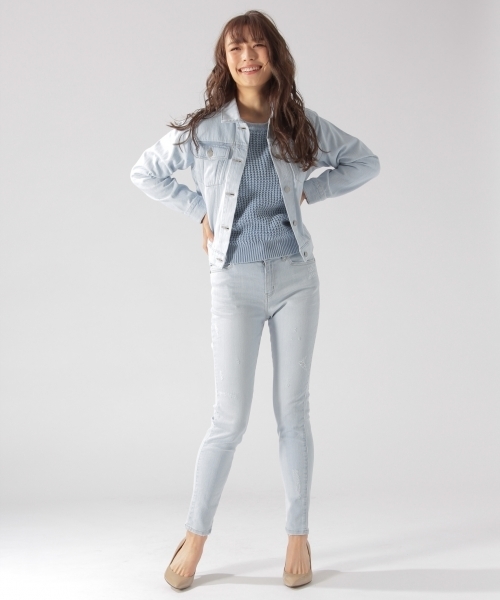 抜群のストレッチ性による穿き心地の良さと美脚シルエットの両方を叶えるスキニーデニム。 ベーシックのスキニーデニムにリペア加工を施した、よりカジュアルに着こなせる1本です。 これまでのスキニーデニムのシルエットを見直し、アップデートさせた新作がこの春登場です! ・股上を深くし、ウエストまわりの心地よいフィット感がUP。 ・座った時に腰まわりの肌が見えにくいパターンに変更。 ・コインポケットをつけた5ポケット仕様でより本格的な雰囲気に。 【インディゴ染めの特徴】 ・他の製品には味わえない自然な風合いがあります。 ・使用していくうちに、独特な色落ち変化を楽しめます。 【使用上の注意】 ・白や淡いものと合わせると移染する可能性がありますの避けてください。 ・直射日光を受けますと変色の恐れがありますので、ご注意ください。 ※製品加工を施しておりますので、一点一点風合いが異なる場合がございます。予めご了承下さい。 ※こちらの商品はダメージ加工を施しているため、一点一点の風合いやダメージ具合が画像と異なります。予めご了承ください。 ※商品の色味につきまして、お客様のお使いのPCのモニター環境により実際のカラーと画像の色味が異なって見える場合がございます。予めご了承下さい。 ※屋外での撮影画像は光の加減で、実際の商品より明るく見える場合がございます。商品の色味はスタジオ撮影の画像を参考にして下さい。