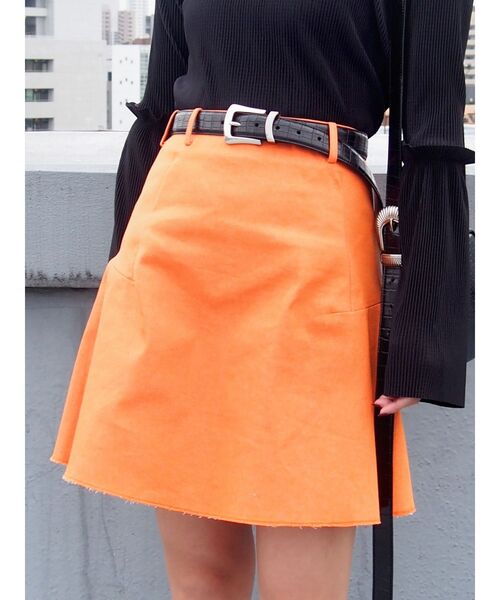 デザインパネル切り替えでAラインシルエットになっている、ミニスカートです。 脇上がりのデザインなので、足を綺麗にすっきりと見せてくれます。 ベルトループが付いているので、トレンドのベルト合わせのスタイリングがおすすめです。