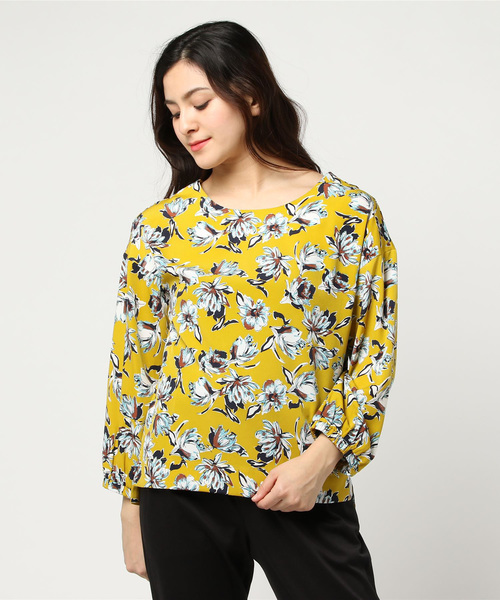 春らしい華やかな印象の花柄ブラウス。 緩やかなクルーネックが顔周りをスッキリとみせてくれます。 ワイドデニムで合わせラスティックな雰囲気や、パールやビジューなどのアクセサリーを合わせて、上品にもコーディネートでき着回ししやすいアイテム。