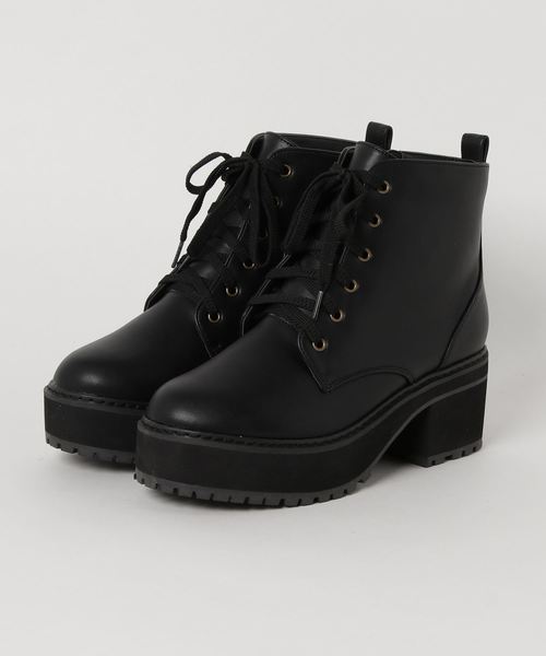 ボリュームのあるソールで マニッシュに仕上げたレースアップブーツ。 どんなコーデにも合わせやすくデイリー使いに最適! 安定感のある太めのヒールは スタイルアップ&履きやすさを両立◎ サイドジップで着脱も楽ちん♪
