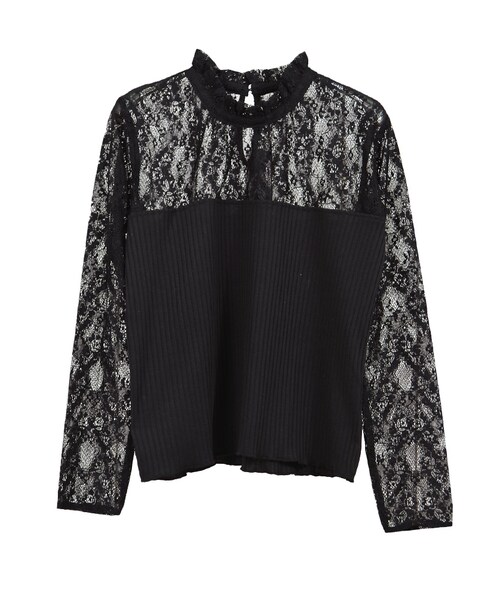 レース部分の透け感がフェティッシュな雰囲気をプラス☆ トップスインにもぴったりのディテールがポイント! パンツともスカートとも相性のいいトップスです♪