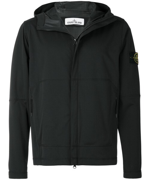 Stone Island (ストーン・アイランド)の、フーデッド ジャケット(ブラック)。前面にファスナー。