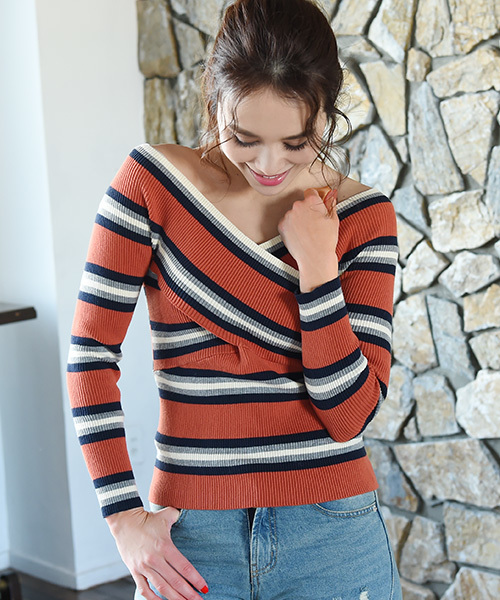 女性らしさを演出してくれる“マルチボーダークロスニットTOPS”が登場。どこかカジュアルな印象のボーダーも、このデザインで女性らしさをプラス。ニット特有のチクチク感がなく、もっちりとやさしい肌触りの伸縮性に優れたリブニット。程よく身体にフィットするシルエットはそのままに、ライダースなどの細身アウターにも合わせやすいすっきりとした長袖デザイン。今から着れちゃう嬉しい春物アイテムです。◆素材チクチク感のない、伸縮性に優れたニット。伸縮性あり/透け感なし/裏地なし◆ケア方法・お洗濯の際は手洗いをおすすめ致します。・アイロンをかける場合は低温で当て布をご使用ください。◆注意事項*撮影場所やイメージにより実際の商品と色味が若干異なる場合がございます。商品のお色味はカラーバリエーション画像をご参照ください。