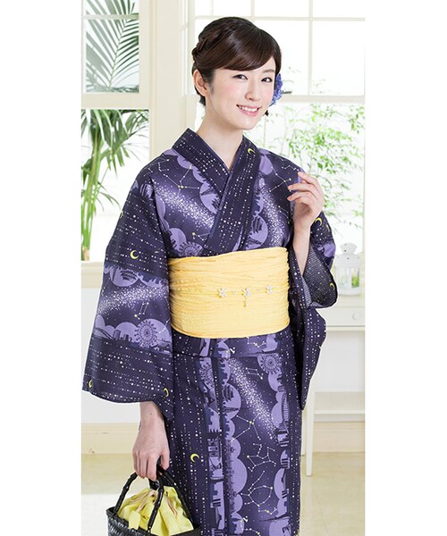 ■浴衣は日本製の綿紅梅生地を使用。綿紅梅は、シャリ感があり肌に触れる面が少ないので、夏の暑い日も比較的にさらりとお召し頂けます。 夜空とスカイツリーや雷門など東京の名所をデザインしたスタッフ渾身の一枚。 ■柔らかくて結びやすい兵児帯は、形の造り方も自由自在♪華やかでキュートな印象が楽しめます。ボリューム感のある帯結びで後姿にも差を付けて。 ■桐下駄は、浴衣屋さん.comオリジナル台を使用。ワンランク上の歩きやすさと履きやすさにこだわりました。 かかとは少しはみでるように履くと粋になります。 ※コーディネートで使用している紐やプチ兵児帯、帯飾り等はセットではありませんのでご注意ください。 ※裁断・縫製の工程上、『着用写真の柄の出方と多少異なる場合がございます』のでご了承くださいませ。 ・素材 【浴衣】 綿100% 染色:日本 縫製:中国 【帯】 ポリエステル100% 中国製 【下駄】 鼻緒:綿100% 台:桐製品 底部分:EVA 中国製 ・サイズ:S・M・L