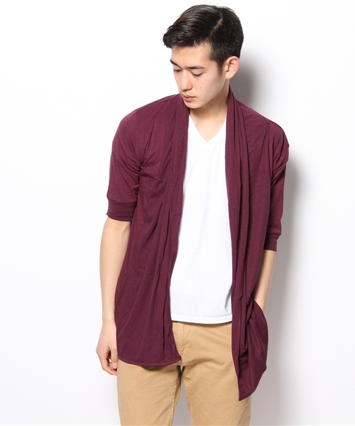 毎シーズンご好評頂いている、5分袖のドレープカーディガン。程よいロング丈と前身頃にいくにつれ徐々に長くなるデザインは、羽織った際に布の緩みと薄手の生地同士が綺麗にたゆみ、力の抜けたリラックスした雰囲気を着こなしにプラスしてくれます。単色使用のデザインは着回しやすく、一枚で手軽に着こなしのアクセントに。無地やデザインカットソーと合わせたシンプルな着こなしも今季オススメです。 店舗にてお問い合わせの際は、下記の品名・品番をお申し付け下さい。品名:ドレープロングカーディガン(5) 品番:M13SM-1299-001 ▼メンズカーディガン一覧はこちら▼▼▽PCの方はコチラ ▽スマホの方はコチラ ▼お得な最新情報をいち早くお届け!メルマガ登録はこちら▼▼ ▽PCの方はコチラ ▽スマホの方はコチラ▽モバイルの方はコチラ model:H180 B86 W70 H86 着用サイズ:LARGEブラック model:H182 B90 W73 H90 着用サイズ:LARGEダークグレー・ワイン model:H178 B87 W71 H90 着用サイズ:LARGE
