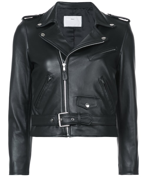 Toga(トーガ)の、クロップド ライダースジャケット(ブラック)。ノッチドラペル、オフセンターのフロントファスナー、長袖、ファスナー付きカフス、前面にファスナー付きポケット&フラップポケット、クロップドスタイル。