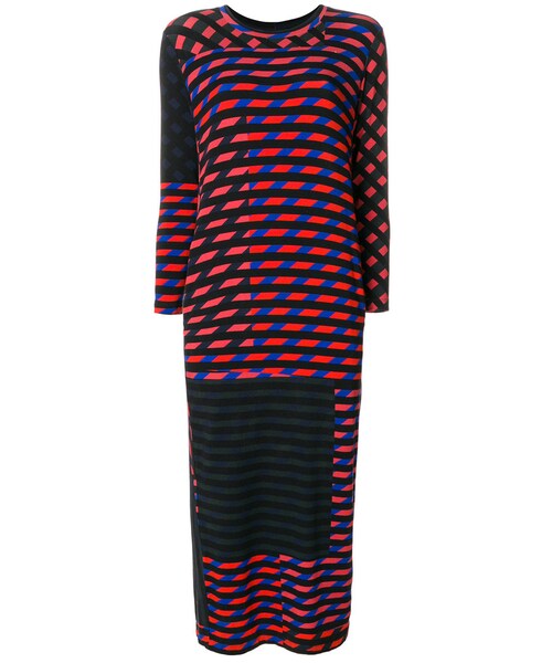 Henrik Vibskov (ヘンリック・ヴィブスコフ)の、プリント ロングワンピース(マルチカラー)。ラウンドネック、長袖、ストレートヘム、ロング丈、カラーブロックのデザイン、ジオメトリック柄。