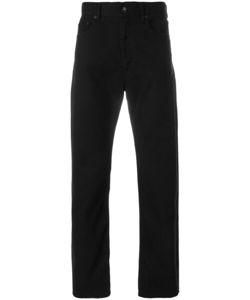 Engineered Garments (エンジニアード・ガーメンツ)の、ストレート パンツ(ブラック)。ベルトループ付きウエストバンド、フロントポケット2つ、背面にポケット、標準丈、ストレートレッグ。