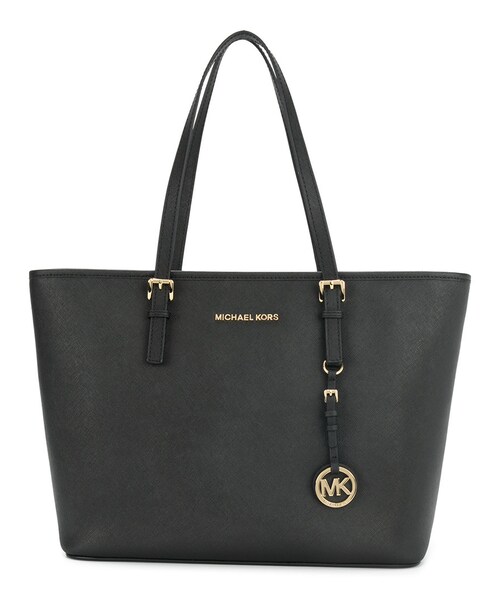 Michael Michael Kors (マイケル・マイケル・コース)の、Jet Set Travel ハンドバッグ M(ブラック)。トップファスナー式開閉、トップハンドル、内側にファスナー付きポケット、ゴールドトーンのロゴプレート、内部にスリップポケット。