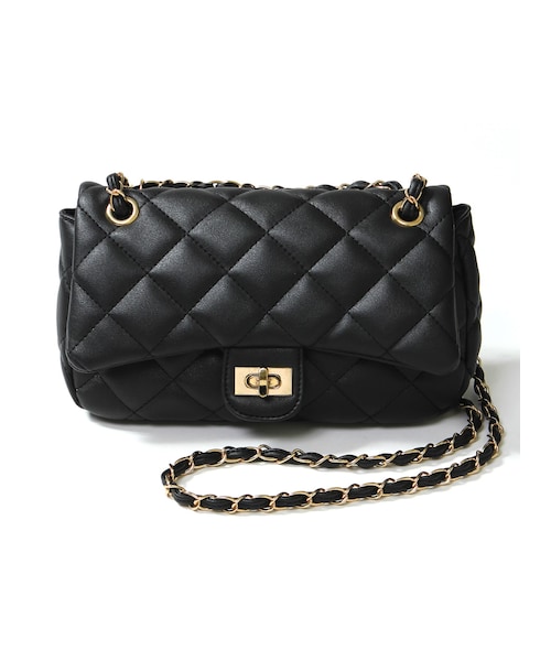 ラグジュアリーなゴールドチェーンでお洒落度をUPするショルダーバッグ♪ キルティングデザインで、クラシカルな雰囲気に♂ 飽きのこないシンプルデザインでいろいろな場面で活躍しそう☆ ★外ポケット:オープンポケット1個付き ★内ポケット:ファスナーポケット1個付き