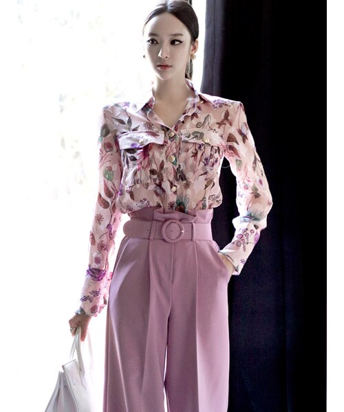 DINT(ディント)の「ゴールドボタンフラワーpatternedブラウス(シャツ/ブラウス・レディース・Pink/Black・one(44~66size))」の2枚目の写真