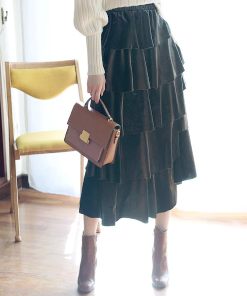 SK1612 ウェンディリボンベルベットスカート(前、後、着用可能)