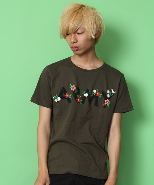 柔らかな肌触りで着心地の良いカットソー。ミリタリーアイテムにありがちな定番のロゴに、花柄刺繍を散りばめて爽やかさをプラスしました。シンプルなデザインはアイテム問わず様々な着こなしとお好みに対応します。トレンドにも左右されづらくシーズン通して長くご愛用頂けるひと品。一枚で着用頂くのは勿論、インナーとしてのアクセント使いもオススメです。 店舗にてお問い合わせの際は、下記の品名・品番をお申し付け下さい。 品名:ARMYロゴT(S) 品番:B13SM-1201-031 ▼メンズTシャツ一覧はこちら▼▼ ▽PCの方はコチラ ▽スマホの方はコチラ ▼お得な最新情報をいち早くお届け!メルマガ登録はこちら▼▼ ▽PCの方はコチラ ▽スマホの方はコチラ ▽モバイルの方はコチラ model:H180 B86 W70 H86 着用サイズ:LARGE