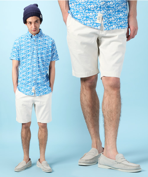 毎年人気の色彩豊かなカリフォルニアチノショーツが登場。 その名の通り、アメリカ西海岸を彷彿させるようなこなれたフェイド感のある加工を施し、リラックス感漂うアイテムに仕上げました。 また、裾にかけて程よくテーパードとしたスリムシルエットで幅広い着こなしが可能。 さりげなくも雰囲気があり、シャツやTシャツとのシンプルなコーディネートにも存在感を発揮します。 3,990円とリーズナブルながら履き心地がよく、色違いで揃えたくなるおすすめの一本。 夏のコーディネートを彩る主力アイテムとして活躍すること間違いなしの自信作です。※生地加工の特性上、裾・ポケットに擦れが見られる場合がございます。予めご了承下さい。品番:75456163624 model:H183 B85 W73 H93 着用サイズ:MEDIUM、Orange:着用サイズ:L、Navy:着用サイズ:XL