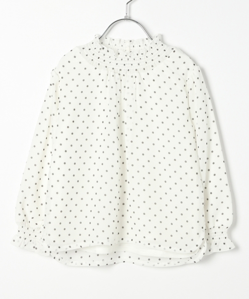 大人顔負けデザイン☆ 大人でも人気のフリルネックデザインのブラウスがキッズで登場! 透け感のあるシフォン素材のブラウスは軽い着心地の1枚に仕上がっております。 裾に向かってフレアに広がるシルエットは締め付けもなく、 1枚ではもちろんサロペットなどのインナーにもおすすめ!