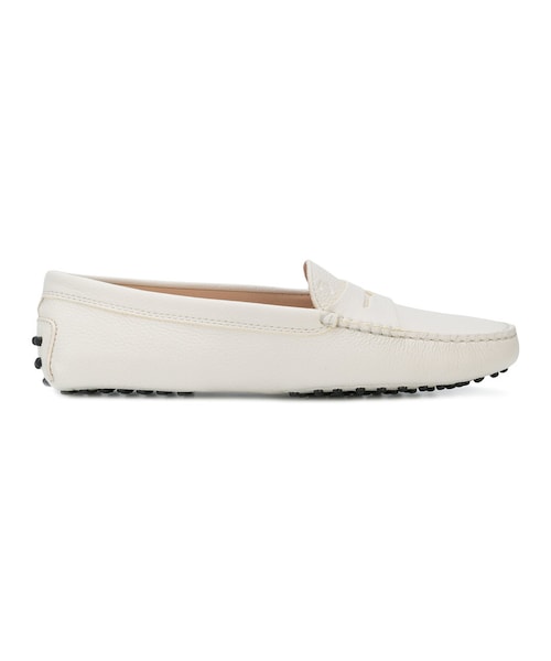 Tod's(トッズ)の、クラシック ドライビングシューズ(オフホワイト)。アーモンドトゥ、スリップオンスタイル、ブランドロゴ入りのインソール。