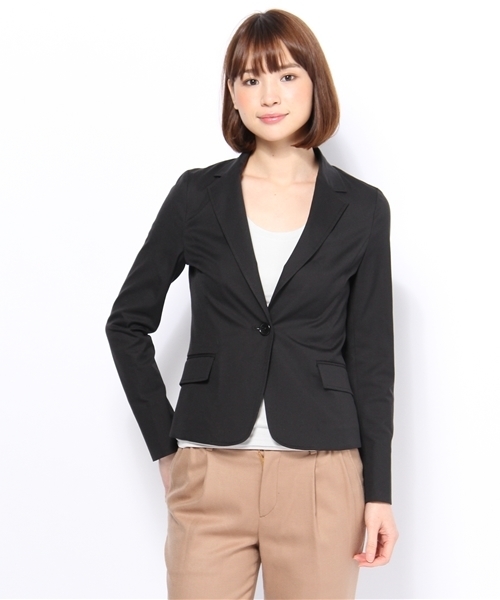 体から汗を蒸発し、いつも涼しくドライ★COOL MAX★繊維構造による吸水・速乾性に優れた素材「COOL MAX」。湿度の多い今からの季節でも心地よい着心地を保ちます。シンプルな1つボタンジャケットをご用意しました。裏地無しの仕様で軽く羽織れる、春夏に最適の1枚。コンパクトできれいなシルエットも魅力的です。セットアップではもちろん、プリントワンピースやスカートにプラスしても◎。■シリーズで7分丈パンツ・9分丈パンツ・スカートもございますベージュ model:H165 B78 W58 H80 着用サイズ:36ブラック model:H170 B78 W60 H88 着用サイズ:36~セール期間中のグリーンレーベル リラクシング各店への在庫のお問い合わせに関して~セール期間中、セール品の在庫の有無に関して店舗ではお答えできない場合がございます。また、セール期間中の店舗でのセール品のお取り置きはお受けいたしておりません。予めご了承下さい。品番:3522-162-0378