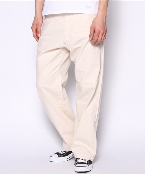 リベットを一切使用していないペインターパンツです。リベットを使わないだけで、表情が一気にクラシックになります。ハンマーループが考案される前の初期ワークパンツをベースに製作しました。この時代のワークウェアは、落書きやツギハギを施したものがよく見られます。大切に着る姿勢を尊重し、ジップが縫い付けられた生地を、落書きの様なタイガーパターンや、素材違いのヘリンボーン生地などを縫い直した様にはめ込みました。この遊び心は、この時代の醍醐味でもあります。 GOOD OL’/ グッド オル 「GOOD OL'」とは、“旧き良きもの”“信頼のおけるもの”という意味を持つスラングである。ストリートでは、チャカ(銃)を指す形容詞として使われている。一言で“GOOD OL'”といっても範囲は広く、洋服に限定しても何を指して“GOOD OL'”だなと思うかは人それぞれである。このブランドでは、自分が“GOOD OL'”だなと思うものを洋服に落としこんでリリースしていこうと思う。ただ旧いものをまねてモノ作りするわけではなく、カルチャーという裏付けをもって洋服を構築している。それがストリートだと思うし、クリエイトだと思う。 Model : H182 B88 W71 H88 (cm) Size : S 店舗へお問い合わせの際は下記品番をお伝えください。 品番:11-24-0196-010