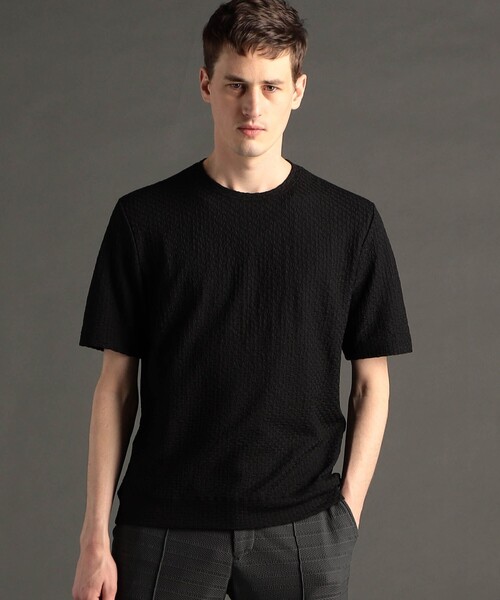 グラフィックジャカード クルーネックニット ■素材 軽量かつ伸縮性に優れたジャカードクレープ生地を採用。 表情豊かなシボ感のある柄が特徴。 ■デザイン 存在感のある表情豊かな柄を活かしたクルーネックニットTシャツ。 スマートなシルエットがスタイリングを上品に演出。 1枚で着ても様になるデザイン。 透け感:ややあり 伸縮性:あり 生地の厚さ:薄手 裏地:なし シリーズ:ノーカラージャケット(品番/6162-6300) ※画像の商品はサンプルです。実際の商品とは仕様・加工・サイズ・素材が若干異なる場合がございます。 ※照明の関係により、実際よりも色味が違って見える場合があります。 またパソコン・スマートフォンなどの環境により、実際の商品と色味に若干の誤差が生じる場合があります。 予めご了承ください。