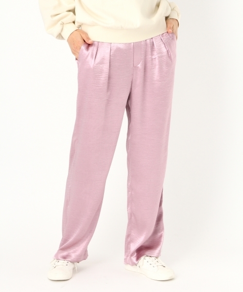 モードな雰囲気で着こなしたいサテンパンツ。 インパクトあるカラーの主役アイテムなのでトップスはシンプル合わせがおすすめ。 ラフなスウェットやボーダーTシャツとも好相性です。