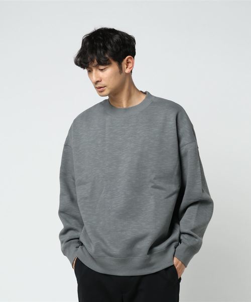 裏毛のサラっとした触り心地が嬉しいスウェットの登場。スラブ感のある無地の生地がおしゃれ度をアップさせてくれる仕上がりに。 首周りから袖、裾はリブ仕様になっていて、キュッと引き締まるだけでなくデザインとしても完成されたアイテム。 ボディーラインを拾わないシルエットで華奢見えが叶う1枚。 【雑誌掲載】 FINENBOYS 5月号