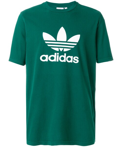 adidas(アディダス)の、Trefoil Tシャツ(グリーン)。ラウンドネック、半袖、前面にロゴワッペン。
