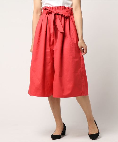 ウエストに寄せたギャザーとゆったりシルエットで華奢見せしてくれるガウチョパンツ。程よくハリ感のある素材で、これからの季節に重宝します。 付属のリボンベルトでウエストマークすれば脚長効果も期待できそう。 ベーシックカラーに加え、春らしい鮮やかなカラーも魅力的です。