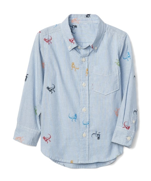 滑らかな織り地 ボタンカフス付き,ボタンカフス付き ボタンダウンカラー、ボタン付きフロント 胸にパッチポケット,胸にパッチポケット . ピンストライプと恐竜グラフィックの総柄 *商品タグに記載の価格とサイト上の販売価格が異なる事があります。