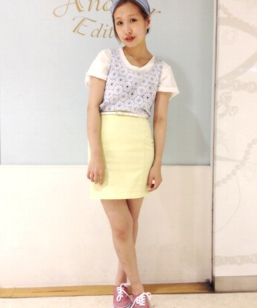 カラーデニムタイトスカート☆ 今シーズントレンドのタイトスカートは今年らしいカラフルなカラーがキュート! タイトなシルエットですが、ストレッチが効いているので履き心地が良いのも魅力です。 プリントTシャツをインして足元にはスニーカーを合わせたトレンド感たっぷりのスタイリングがオススメのスカートです♪ model:H167 B75 W57 H87 着用サイズ:MEDIUM ●ライトブルー着用スタッフ:155㎝ 着用サイズ:MEDIUM ●イエロー着用スタッフ:154㎝ 着用サイズ:SMALL ※スタッフ着用画像は色味が若干異なります。カラーは詳細画像をご確認ください。 ※着用、お取り扱いの際は商品についておりますアテンションタグ、洗濯ネームを必ずご確認ください。 店舗にお問い合わせの際は、全国のAnother Edition店舗まで 下記の品名/品番をお申し付け下さい。 品名:AE カラーDNM タイト SK 品番:56242990480