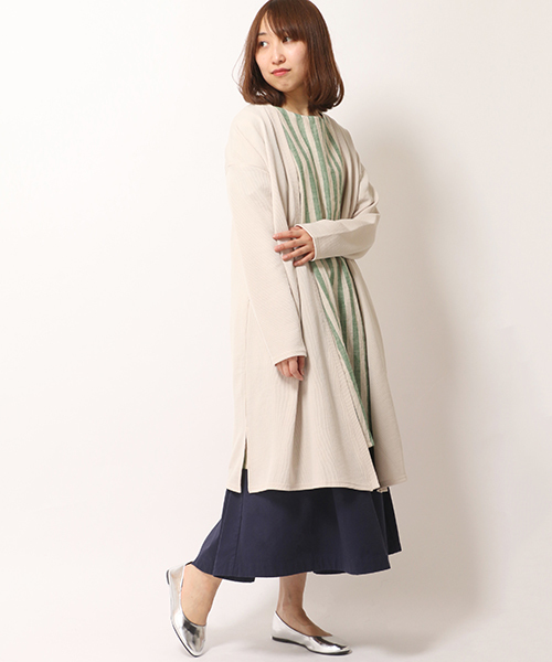 やわらかくてナチュラル、肌触り快適なコットンレーヨンのストライプワンピース。少し太めのストライプ柄は、トレンド性はもちろん縦のラインもすっきり。袖口をロールアップすることでニュアンスがプラスされています。そのままふんわり着用しても素敵ですが、今年はベルトでウエストマークするアレンジも雰囲気が変わっておすすめです。デニムやスキニーとのレイヤリングも◎