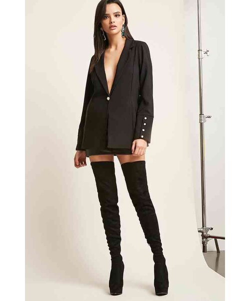 A pair of faux suede over-the-knee boots featuring a stiletto heel, almond toe, platform, and side zipper closures. - This is an independent brand and not a Forever 21 branded item. Content + Care - 100% faux suede - Made in China