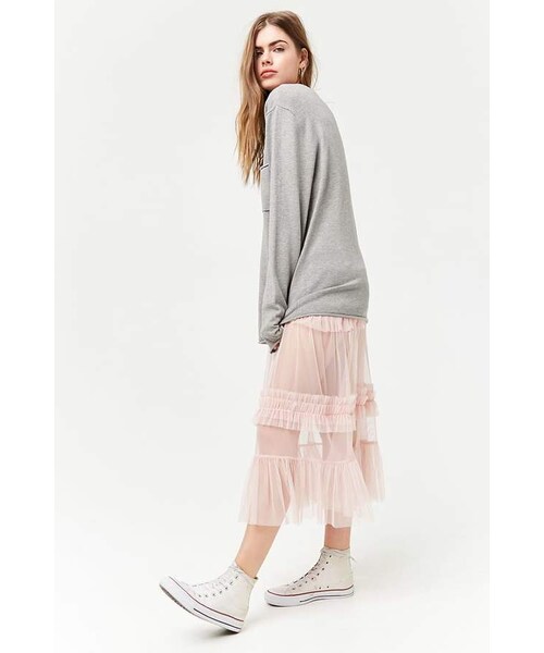 A sheer mesh woven tulle skirt featuring tiered ruffle layers, a banded waist, flounce hem, and a maxi length. - Layering garments not included. Content + Care - 100% polyester - Hand wash cold - Made in China