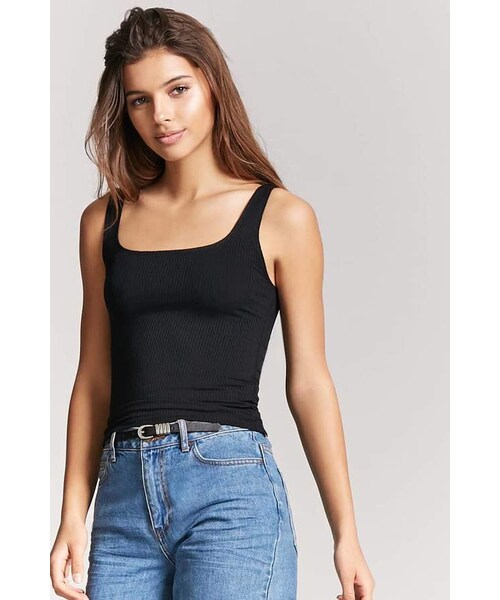 A ribbed knit tank top featuring a scoop neck and back, and a form-fitting silhouette. Content + Care - 93% rayon, 7% spandex - Hand wash cold - Made in Vietnam