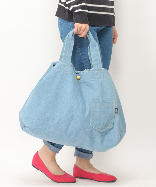 普段使いにぴったりのデニムトート。アクセントになったポケットは、ジーンズのヒップポケットみたいな遊び心溢れるデザイン♪A4はもちろん、1泊旅行程度の荷物なら収納できるビッグサイズです。・内側の色味は全カラー同色です。・内側の色味は全カラー外側の色味と同系色です。