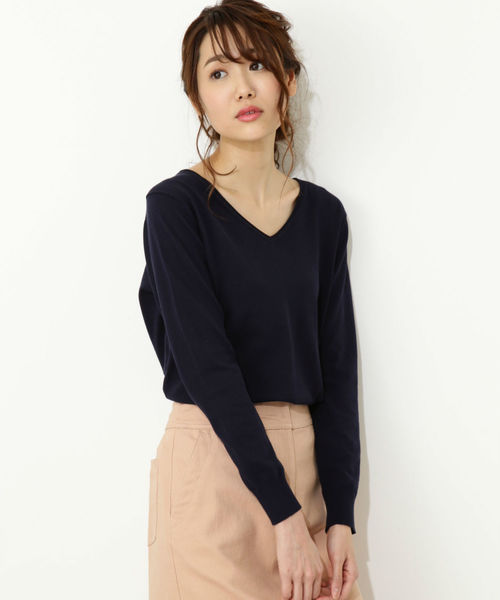 肌触りの良いソフトな風合いのコットン素材を使用したVネックニット。華奢なネックラインが女性らしくきれいめに着こなせるポイント。程よく体にフィットするコンパクトなシルエットでどんなボトムスとも相性が良いのが魅力です。ベーシックニットは、お仕事から日常まで着回し力抜群の頼れる一枚!今年らしい豊富なカラーでご用意しました。