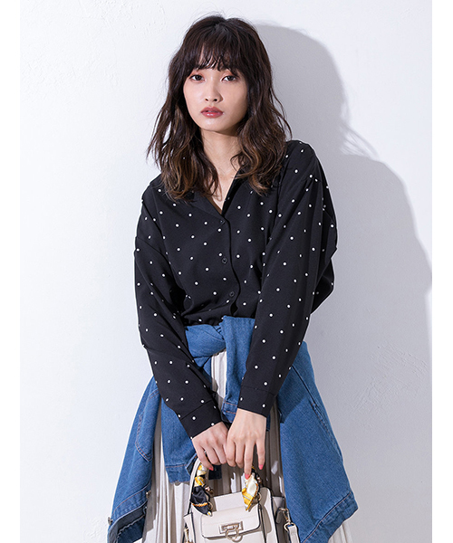 女子永遠の定番柄、ドットはモノトーンで大人顔に取り入れてモノトーン配色で子供っぽく見せない、プチドット柄を乗せたスキッパーブラウス。レトロな雰囲気漂うてろんとした開襟デザインが、オシャレ度をグッと高めます。ボトムにインすればすっきりシャープに、アウトすればふんわりラフな装いが決まります。《 お知らせ 》▼商品のお気に入り登録お気に入りアイテムの値下げ・再入荷・在庫1点などどの通知を受け取ることができます。▼ブランドのお気に入り登録新商品や再入荷、セール、クーポン配布などお得な情報を受け取ることができます。