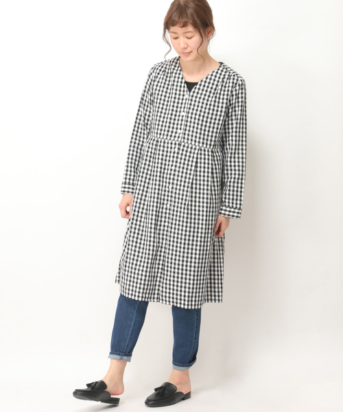 定番ながら今年もほしいギンガムチェックのワンピース。衿のデザインをVネックにすることでトレンド要素もさり気なく。ウエストには切り替えが入り、そこからタックでふわっと広がるやさしいシルエット。前を開ければ羽織りとしてアレンジできます。