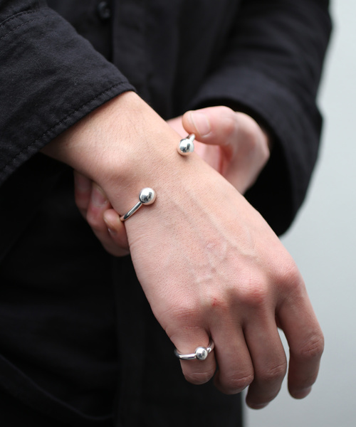 ウォレットと、ウォレットチェーンを繫げるパーツとして開発されたJAM HOME MADEのオリジナルハトメパーツ『JAM EYELET』が発表されてから20年。 現在ではJAM HOME MADEの代表的アイコンの一つとなっている『JAM EYELET』は、ブランドの成長と共に少しずつアップデートを重ね、「肌に最も近いプロダクト」としてマスターピースへと昇格しました。 ウォレットに繫ぐパーツとしての用途を果たすことはもちろん、360度回転することで絡まりを防止するストレスフリーな機能性や、裏側に誕生石をセットすることで、使う人のお守りとしての役割をも込められた小さなパーツ。 今回、この『JAM EYELET』をモチーフに、本来の用途を超えた新しいジュエリーシリーズをSILVER925で製作しました。 片側の球体にタップが仕込まれており、取り外すことで鍵の付替えができる構造で、キーホルダーとしても使用できる2way仕様。 手首に鍵をぶら下げる新しいスタイリングの提案も可能です。 JAM HOME MADEのもう一つのアイコン、セーフティピンのモチーフが付属しています。