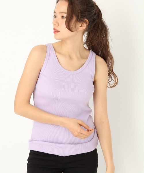 テレコ編みでストレッチ性の高い生地を使用した、人気のタンクトップがこの春も登場。 ボディラインに程よいフィット具合で着用できて、 見せるインナーとしても使えるカラーバリエーションでの展開です。 着丈は長めでヒップにかかる程度あり、裾からカラーを見せる着こなしにも◎