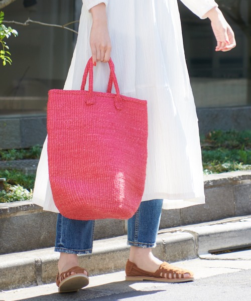 ナチュラルなテイストと丈夫さがポイントのサイザル麻の繊維を編み込んで作ったかごバッグです。縦型で丸底のコロンとした形が可愛らしいデザインになっています。シンプルなのでどんなアイテムとも合わせられ、使うほど素材の味がでてきます。使わないときは、たためて便利な大人カジュアルなコーデのアクセントになるバッグです。