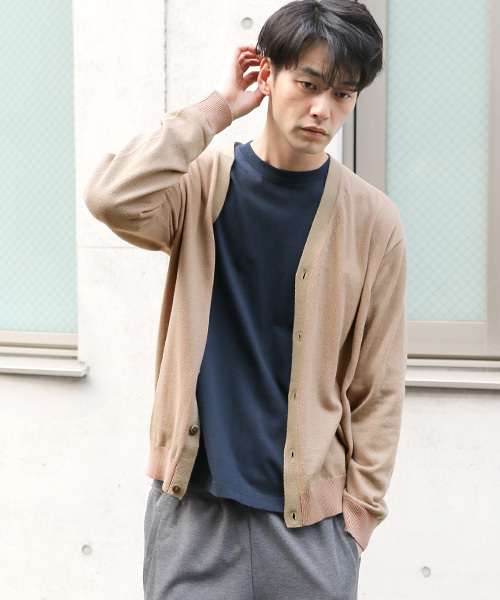プレーティング編みの表情が魅力的なニットカーディガン。サラリとして着心地が柔らかくしなやかな独特な表情を楽しめる編み地が魅力です。