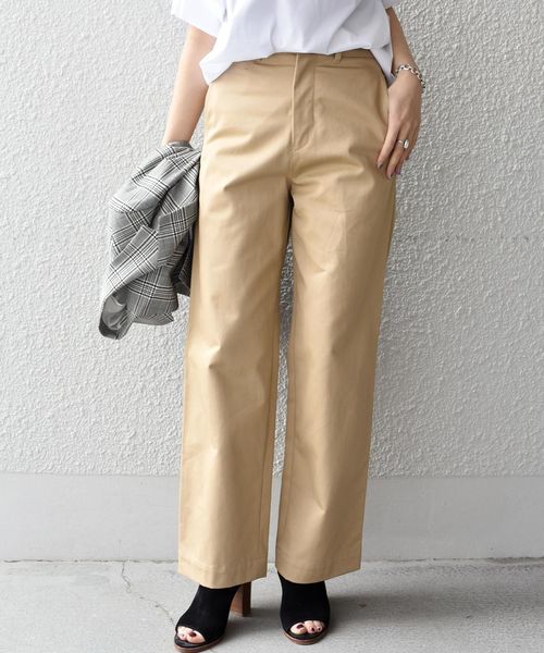 一年中着まわしのきくチノパン。程良くワイドでトップスも合わせやすいデザイン。春はブラウスやTシャツとの組み合わせがおすすめです。 ※末永く愛用頂く為に、アテンションタグ・洗濯ネームを必ずご確認の上、着用又はお取り扱い下さい。