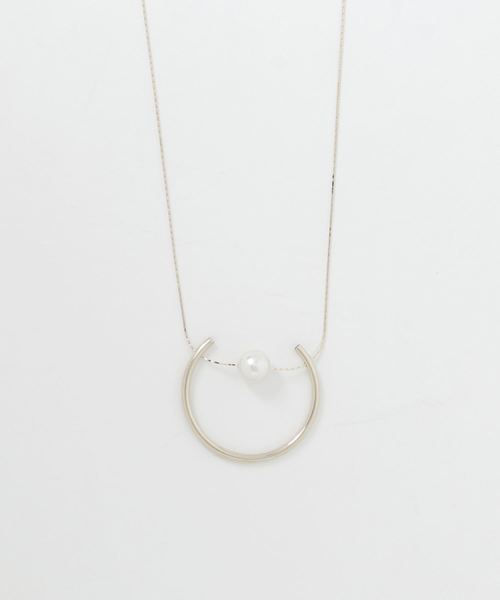 メタルパーツとパールのネックレス。ラウンドパーツとパールの組み合わせが、シンプルなトップスの胸元に華やかな印象を与えてくれます。アジャスターもついているので長さの調節が出来るのも嬉しいポイント。きれいめコーデと相性抜群の一点です。