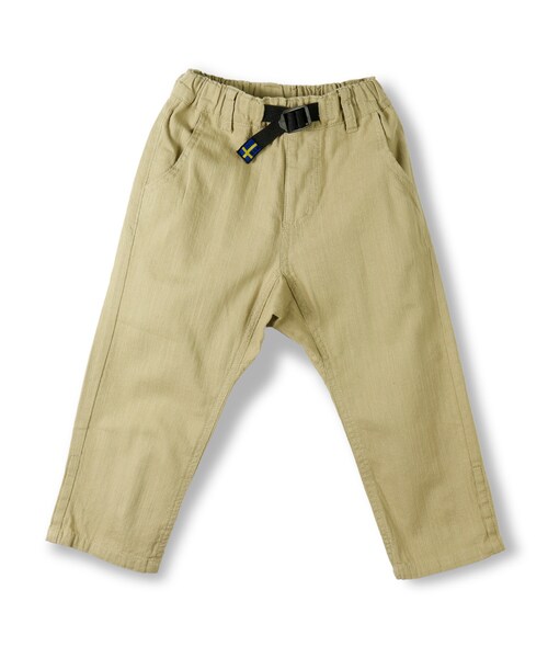 股下にマチ付きのシルエットで動きやすいクライミングタイプのロングパンツです。ウエスト飾りベルトがデザインポイントとなっています。