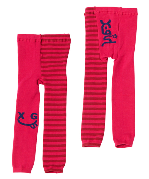 膝にSMILEY!おしりにはロゴが入った子供らしいニットレギンス。片足はボーダー柄になっていてPOPな印象に★他にはないデザインがポイント!!