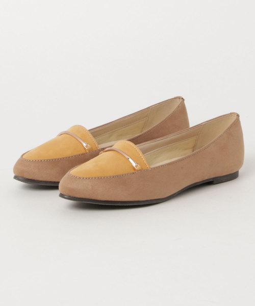 春のコーデを格上げしてくれるバイカラービット付きフラットパンプス 春らしいバイカラーが足元を印象的に彩るフラットパンプス。メタルのパーツでキリッと引き締めてくれます♪ビットがあることでより大人な印象に。マニッシュなスタイリングと相性の良い一足ですカットオフデニムやロールアップデニムの外しアイテムとして取り入れても◎ワイドパンツやスカートとの相性も良、ボトムのデザインは選ばないのも優秀ポイント☆一度履くと癖になる!!インソールは低反発でクッション性抜群!歩きやすく、疲れにくい機能性も優れた優秀アイテムです☆